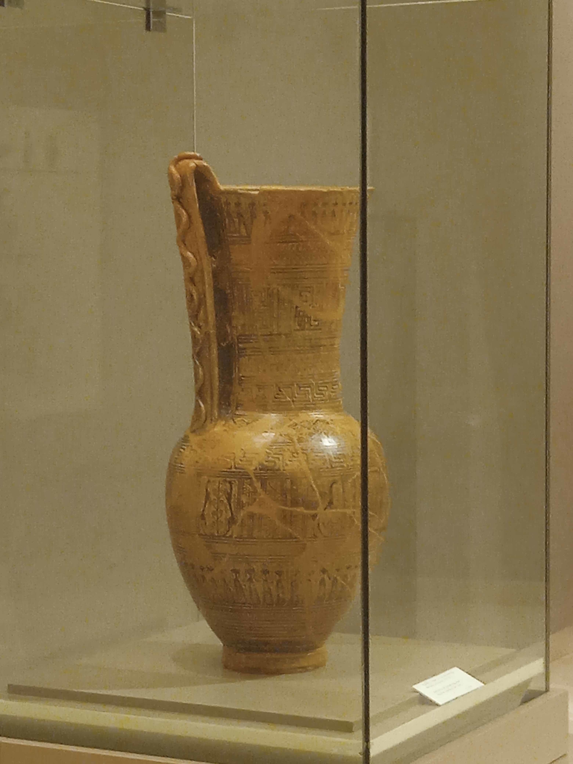 - Μία πρόχους της Γεωμετρικής εποχής από τη Νέα Μάκρη, που αποτελεί μεγέθυνση ενός καθημερινής χρήσης σκεύους. Βρέθηκε στο αρχαίο νεκροταφείο μπροστά από το Πνευματικό Κέντρο Μαραθώνα. Χρονολογείται στον 8οαι. π.Χ. και συνδυάζεται με ταφικά έθιμα νεαρών κοριτσιών που πεθαίνουν άγαμα.
