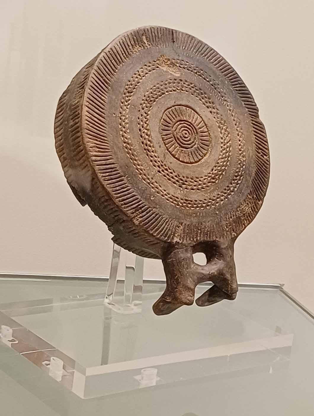 - Ένα τηγανόσχημο σκεύος από το Τσέπι, που χρονολογείται στην Πρώιμη εποχή του Χαλκού (2.800- 2.500 πΧ), η λαβή του οποίου διαμορφώνεται σε ανθρώπινα πόδια. Το μοναδικό αυτό εύρημα με τα ανθρωπομορφικά στοιχεία προσδίδει νέα διάσταση στην ερμηνεία των περίεργων αυτών προϊστορικών αντικειμένων.